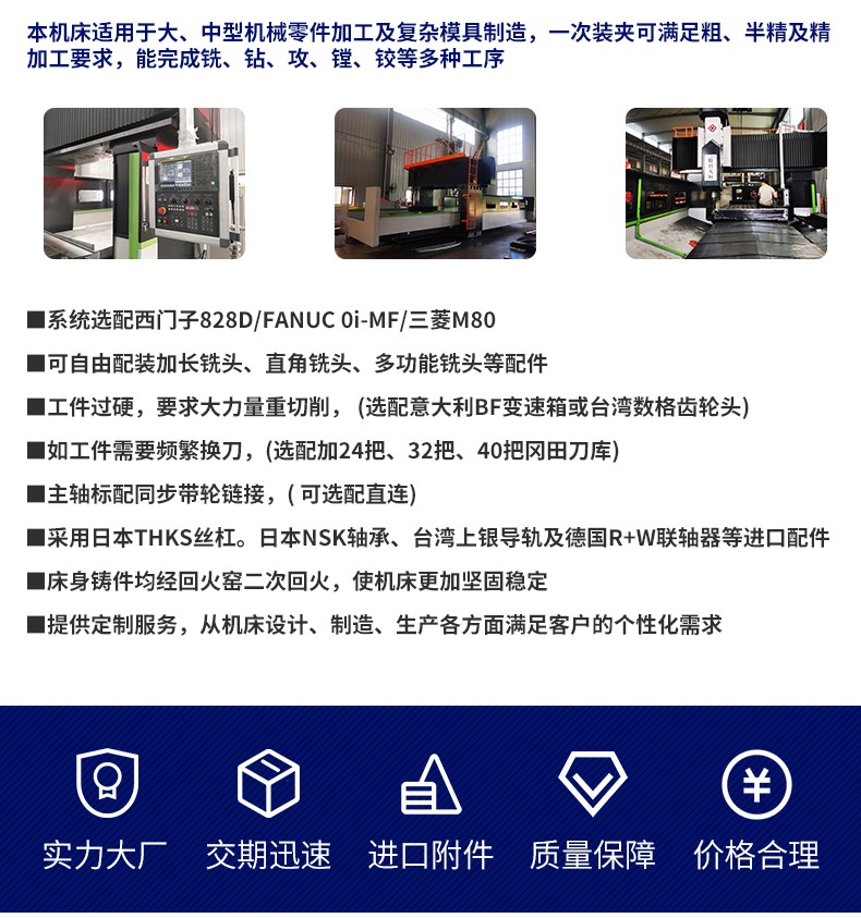 8. 大恒(héng)數控龍(long)門銑床(chuáng)加工範(fan)圍:滿足(zú)各種基(jī)礎大件(jiàn)、闆件、殼(ké)體☀️件、模(mo)具等多(duō)種零件(jiàn)的數控(kòng)加工,工(gong)件在一(yī)次裝夾(jia)後可⚽持(chí)續完成(cheng)😘銑、镗、鑽(zuàn)、鉸、剛性(xing)攻絲等(deng)多種工(gōng)藝的加(jiā)工。